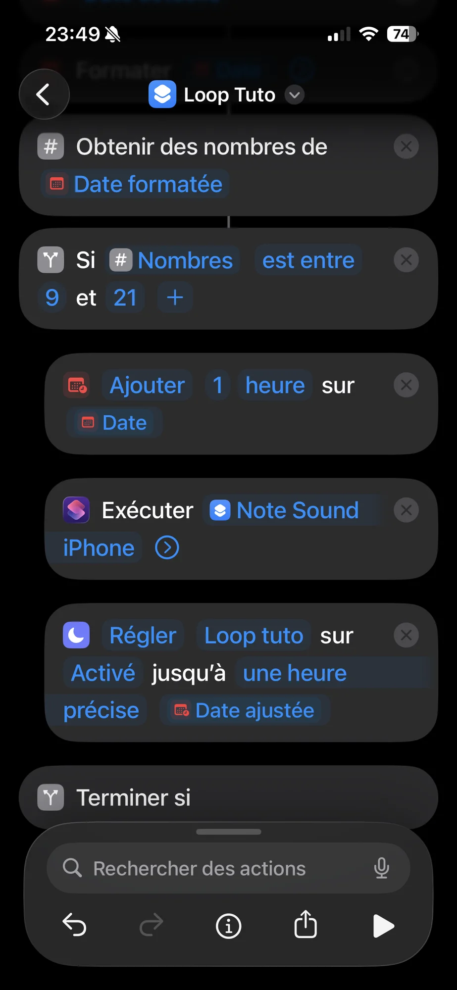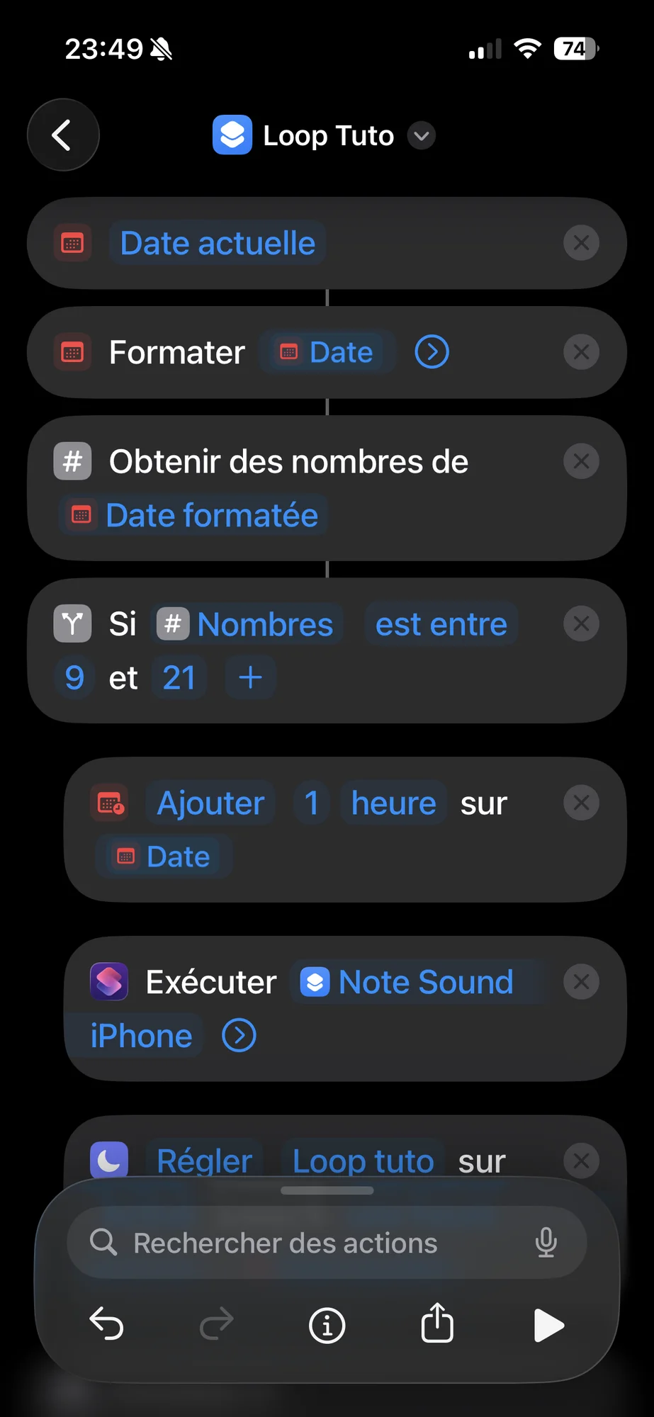 - Raccourci boucle : https://www.icloud.com/shortcuts/3f0ba2fdced44d29bfe06e971b442a7c