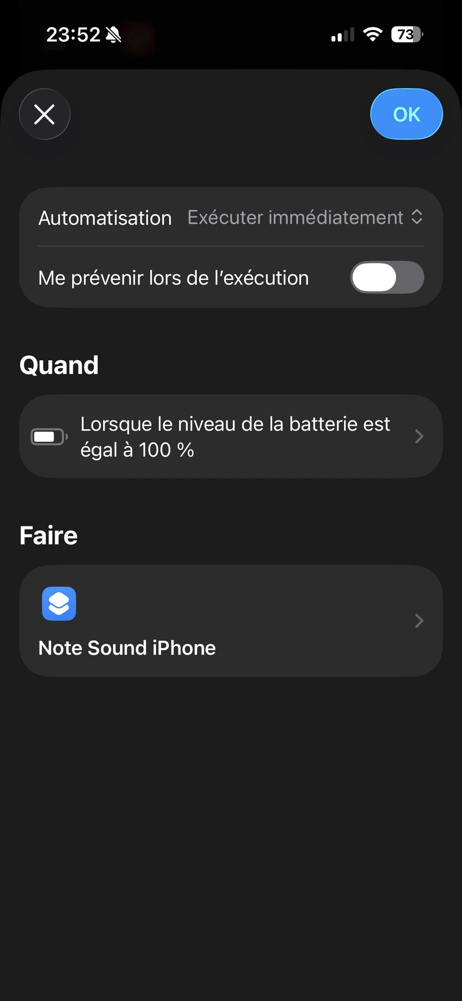Vous pouvez réutiliser le son « Note » pour d’autres automatisations, comme être averti lorsque la batterie atteint 100 %.